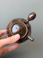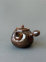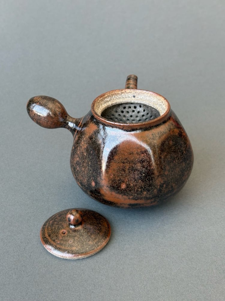 -Wheel-thrown and handmade stoneware kyusu teapot in tenmoku glaze