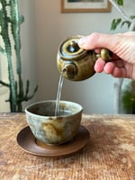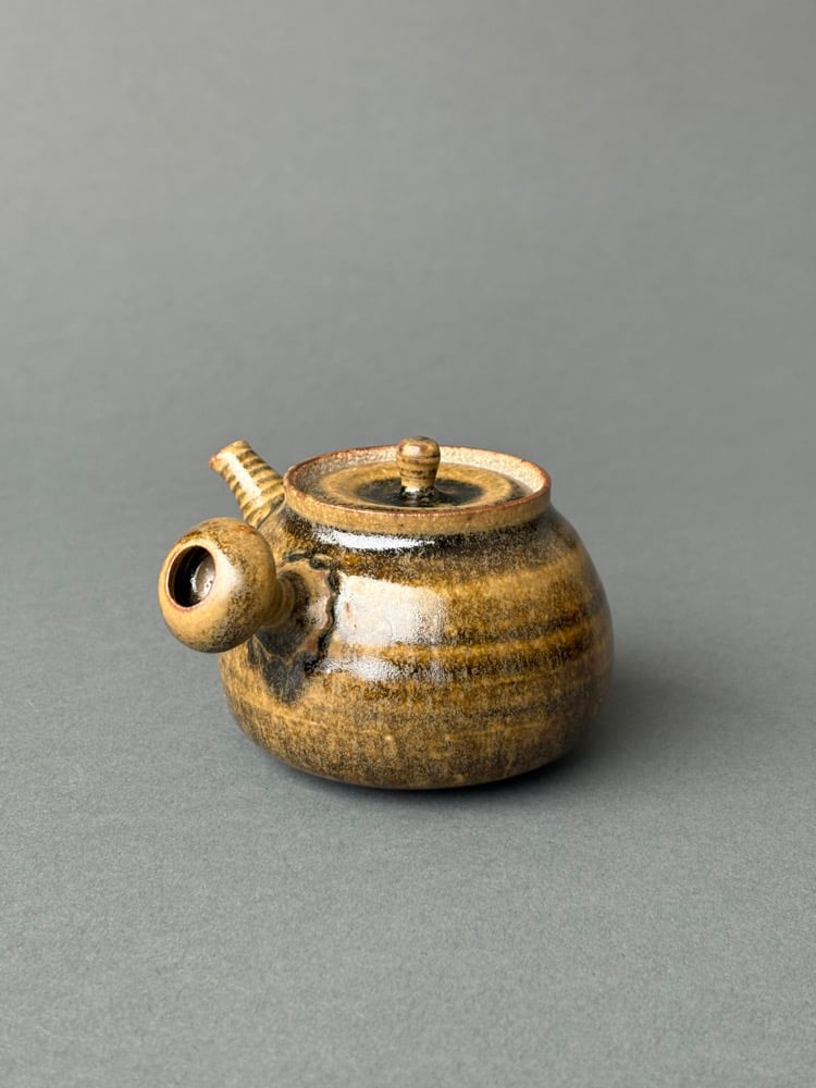 -Wheel-thrown and handmade stoneware kyusu teapot in amber glaze