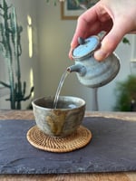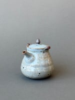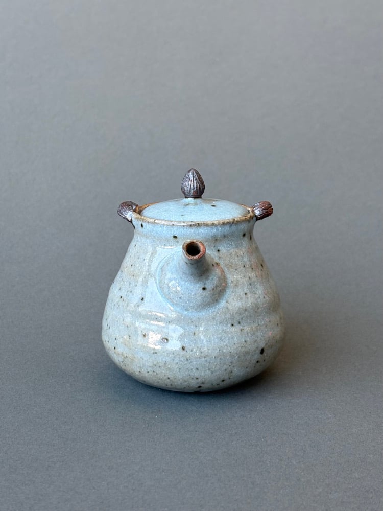 -Wheel-thrown and handmade stoneware houhin tea brewing vessel in chun glaze.