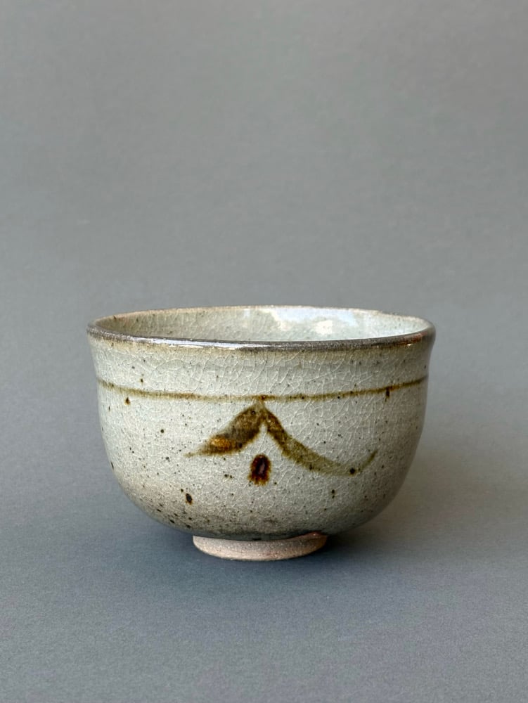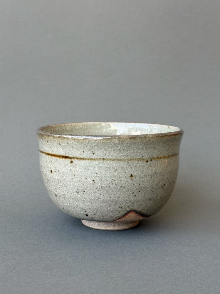 -Wheel-thrown and turned chawan tea bowl in Karatsu-style ash glaze